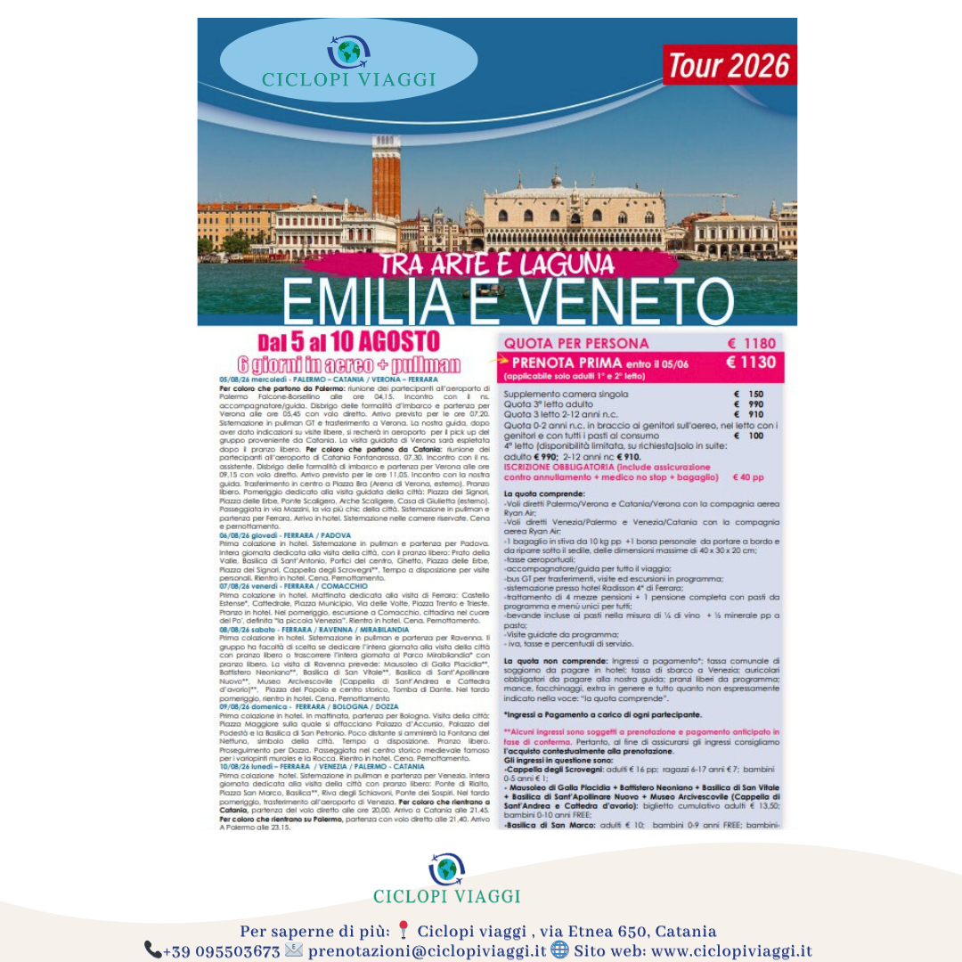 QUOTA PRENOTA PRIMA DA € 1130 per persona per prenotazioni entro il 5 Giugno 2026