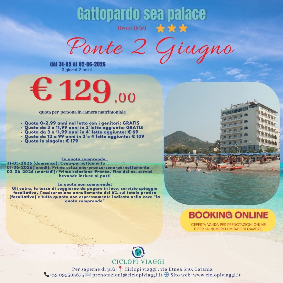 Dal 31/05/2026 al 02/06/2026 (3 giorni / 2notti)