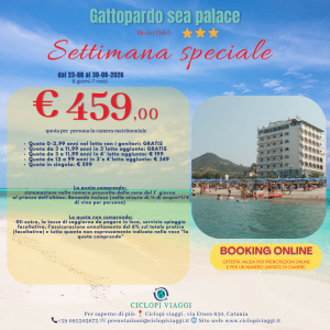 GATTOPARDO SEA PALACE 3* – SETTIMANA SPECIALE 23-30 AGOSTO 2026