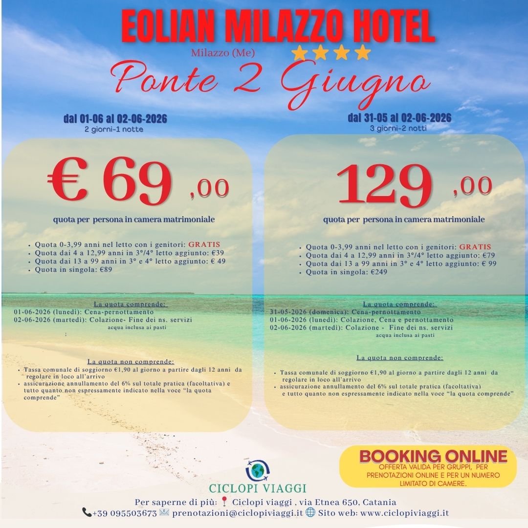 Dal 01/06/2026 al 02/06/2026 (2 giorni / 1 notte)