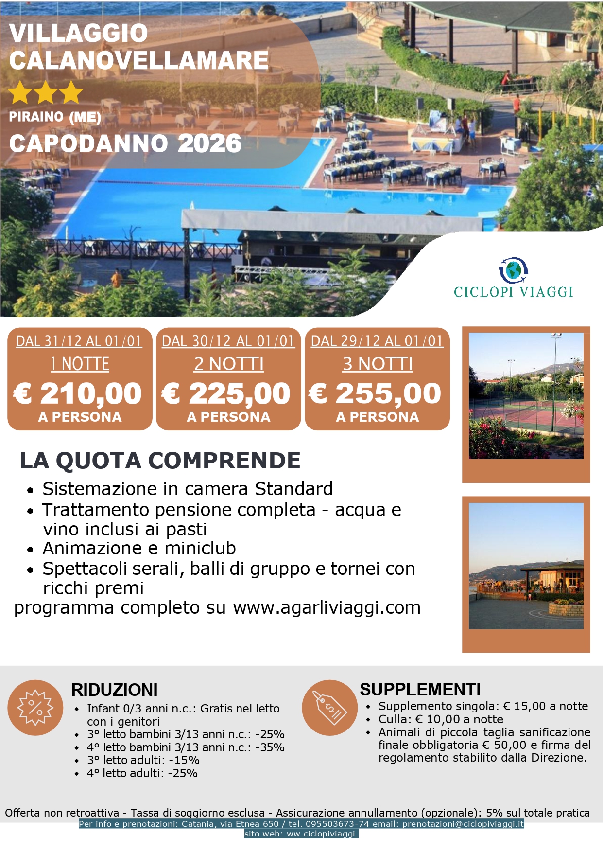 Periodo | Dal 29/12/2025 al 01/01/2026 |