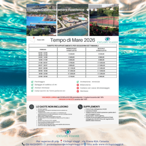 Ristorazione: Il servizio di ristorazione comprende la colazione a buffet, il pranzo composto da antipasto, due primi, un secondo, contorno, frutta o dessert, il tutto servito al tavolo; la cena con due primi di cui uno a buffet, due secondi, contorno, frutta o dessert. Il vino in caraffa a volontà è incluso nel prezzo così come l’acqua depurata refrigerata. Durante la settimana vi sono due serate particolari, una la serata Siciliana che si svolge il lunedì o il martedì con menù siciliano ed i canterini che si esibiscono in sala, con canti siciliani e tarantella coinvolgendo gli ospiti, l’altra è il mercoledì o il giovedì, la serata elegante, a lume di candela, quando i numeri lo consentono si svolge a bordo piscina.